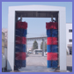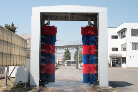 This is a long-selling washing machine to wash the sides of a vehicle with two units of brushes. The footprint is the smallest among the stationary washing machines. It has been frequently improved since its debut, and we guarantee the superb structure and features. The sides of a vehicle are fully washed with the newly developed brushes and the new control system. Washing can be performed through the whole process vehicle washing machine controller which controls washing time, volume of water, and washing spots. Also, molten zinc plating is used for the frame of the machine, and aluminum‐zinc alloy‐coated steel sheet is used for the outside plating, as a standard specification for long-term hard use. A variety of options are also available in response to specifications of users such as a card system, a coin system, a POS system, and a failure data logger.