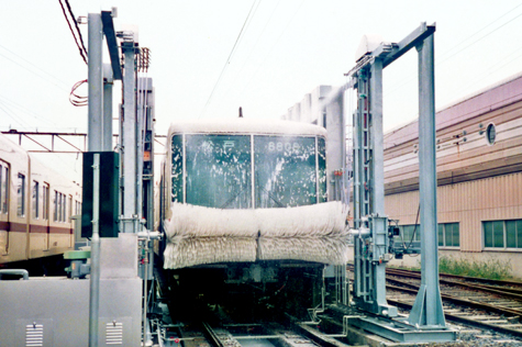 The Tokyo metropolitan area has subway carriages running through it under the tightest schedule and carrying the largest number of passengers in the world. The beauty of such carriages is maintained by our washing system(Train Wash Plant). Our washing system(Train Wash Plant) realizes the best washing quality under the extremely limited conditions of washing time, washing space, volume of water, etc. The whole circumference of a carriage including the front and rear, and shoulders, to say nothing of the sides, is fully washed. Our blower system thoroughly removes the washing water droplets stuck to the windows of the front and rear of a carriage without any need for manual washing.